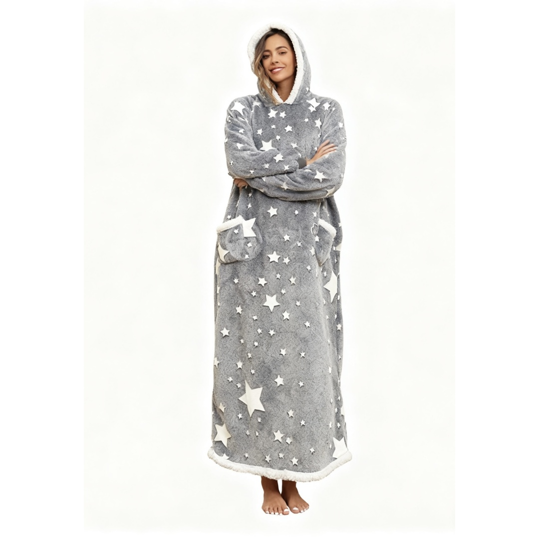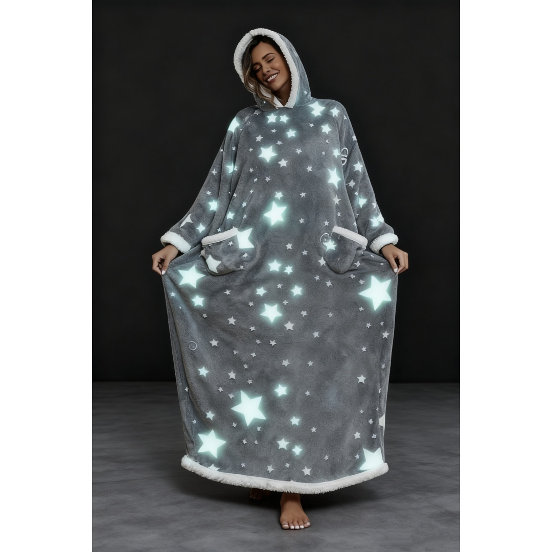Oversized Wearable Hooded Blanket With Print Glow In The Dark Long Size-59in Sherpa Warm Sweatshirt For Women
