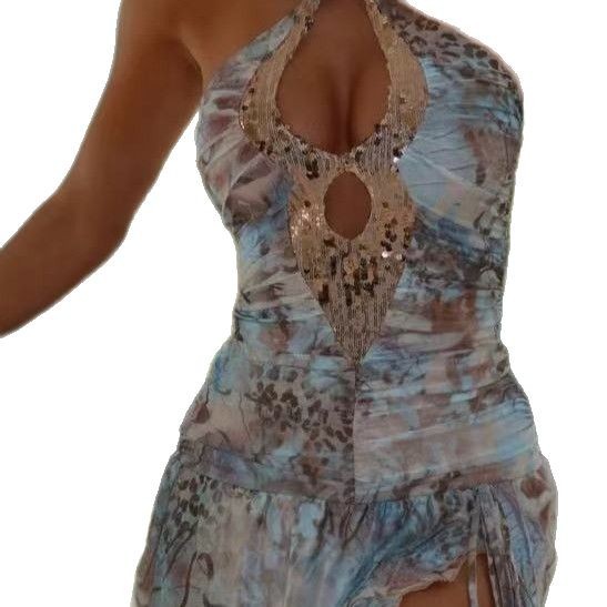 V-neck Sexy Sleeveless Halter Backless Sheath Dress