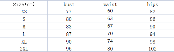 Size: XS Bust 77 Waist 60 S Bust 80 Waist 63 M Bust 83 Waist 67 L Bust 87 Waist 70 XL Bust 90 Waist 74 XXL Bust 96 Waist 80